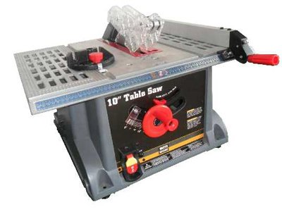 Master Mechanic, 10', Table Saw, 26' x 16' Die Cast Aluminum Table Top, Blade Guard System, 13A, 4500 RPM Motor, 10' Blade Diameter, 5/8' Arbor, 3-1/8' Depth Of Cut At 90 Degrees, 2-1/6' Depth Of Cut At 45 Degrees, 0-45 Degree Blade Tilting Range, Easy View Measuring System, Includes: Double Sided Quick Release Locking Rip Fence, 10' 40 Tooth Saw Blade, Miter Gauge, Push Stick & 2 Blade Wrenches.Read more MM 10" Table Saw